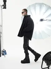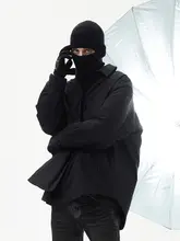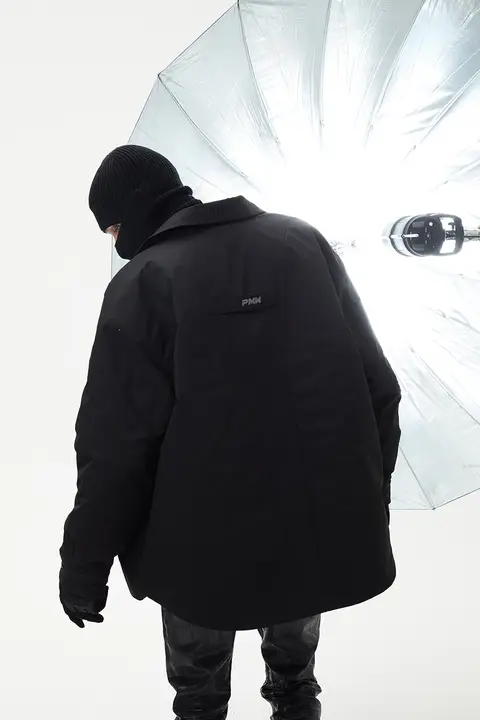 PMW メンズ 黒シャツジャケット【綿製・秋冬用・保温・ルーズフィット・厚手】