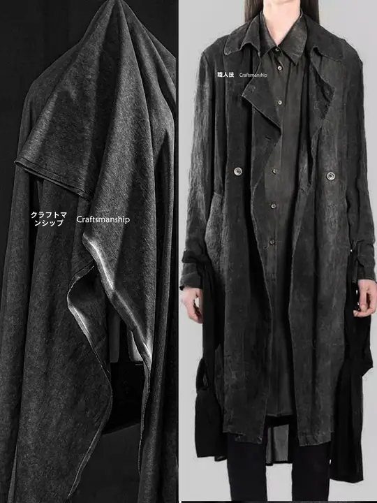 厚手ブラックグレー ヴィンテージ加工 コットンオックスフォード生地【コート、ジャケット用】