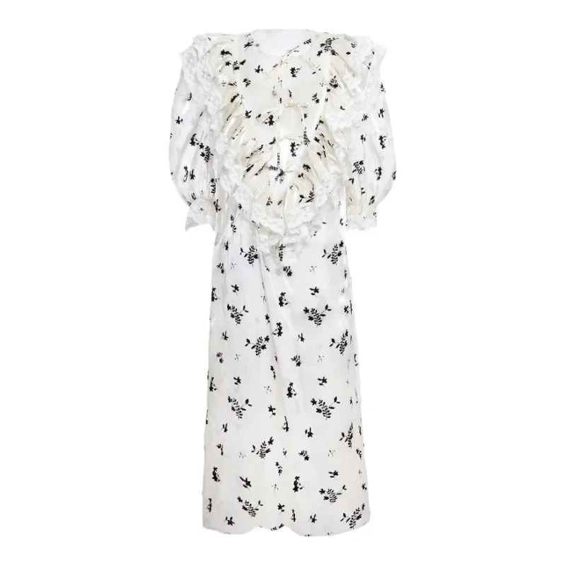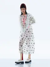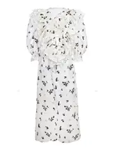 Mooly 蝶の効果 中袖レース付きバブルドレス【春用・フラワープリント・リボンデザイン】
