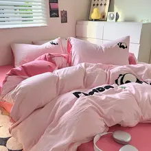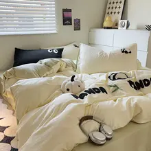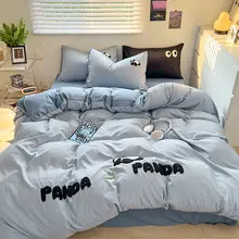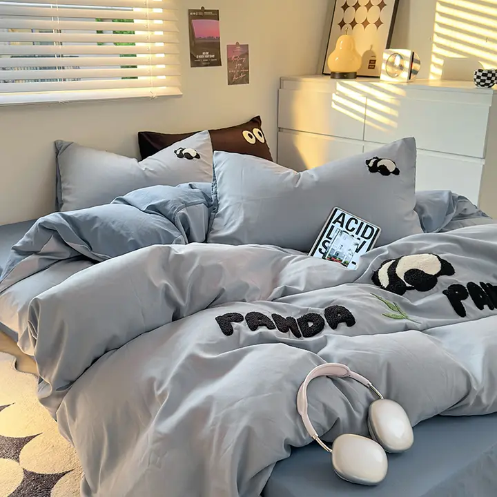 可愛いパンダ刺繍入り 四点セット ベッドシーツ【水洗い可能・学生向け・寝具セット】