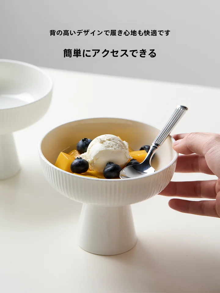 エレガントな高脚デザインで、アイスやデザートを華やかに演出。食卓を上品に彩ります。