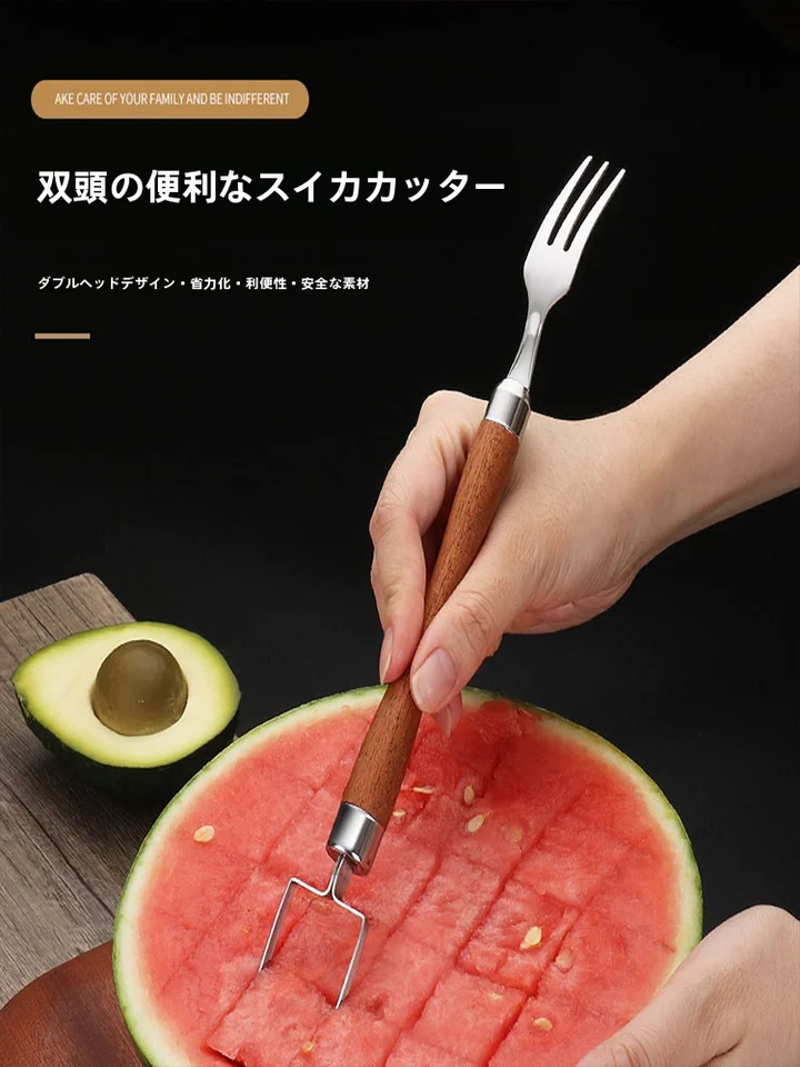 ステンレス製 スイカカッター【ダブルヘッド・カット用フォーク・フルーツフォーク】