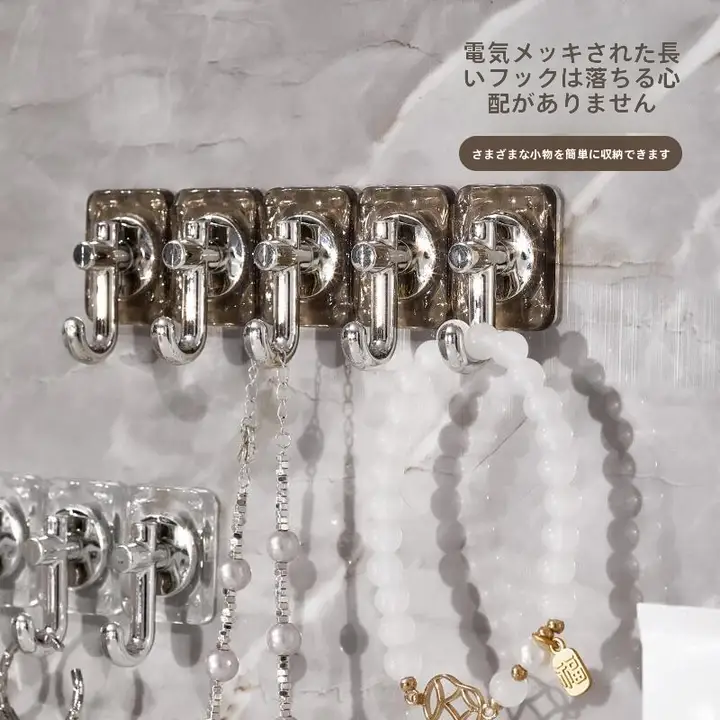 強力粘着フック【穴あけ不要・無痕・小型・鍵や衣類用・浴室・トイレ用】