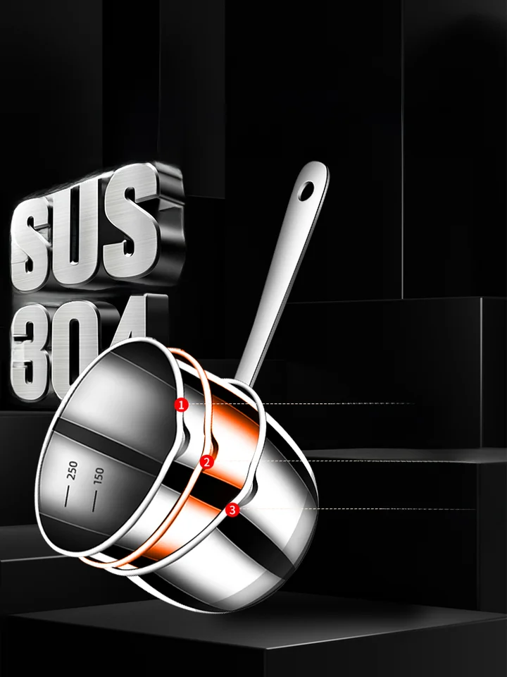 304ステンレス 油はね小ポット-250ml 【スチールハンドル】