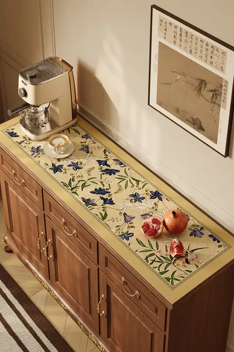 防水レザー製 テレビ台&ドレッサー用 長方形装飾マット【中世風デザイン・軽量・秋用】