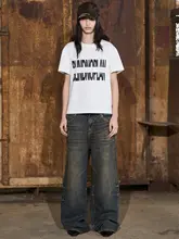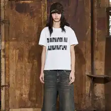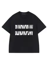 立体プリントのショート丈ゆったりコットン半袖Tシャツ【夏用】