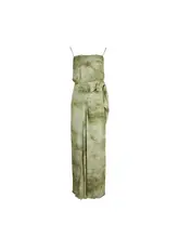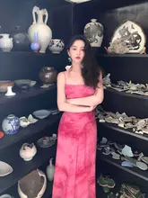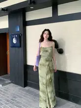 花染めロングキャミソールワンピース【レトロデザイン・ウエストリボン・夏用】
