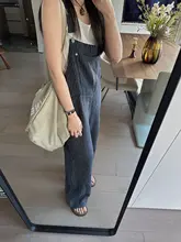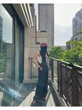 iWiNG 重厚なリネンデニムストライプサロペットパンツ【カジュアルスタイル・ブルー】