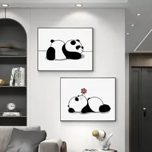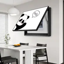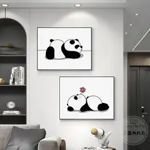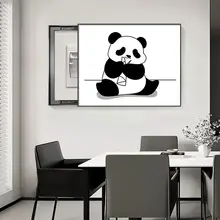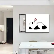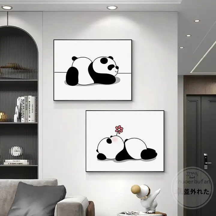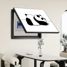 穴あけ不要のモダンな黒白パンダの電気メーター箱用アートパネル【シンプルデザイン・レストラン用】