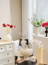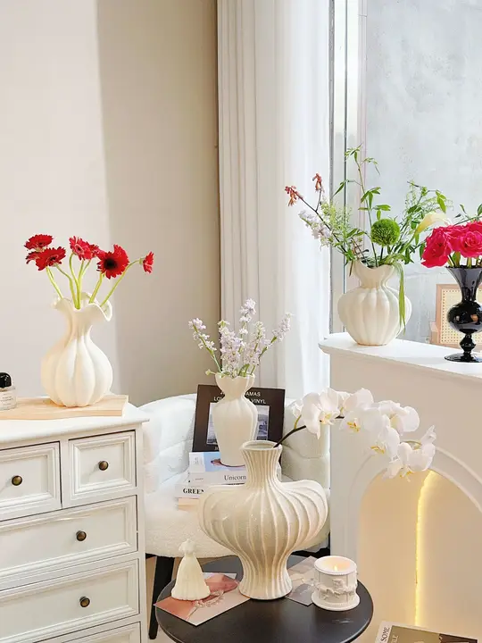 フランス風レトロ乳白色セラミック花瓶【高級感あるテーブル装飾用・リビングでの花飾りに最適】