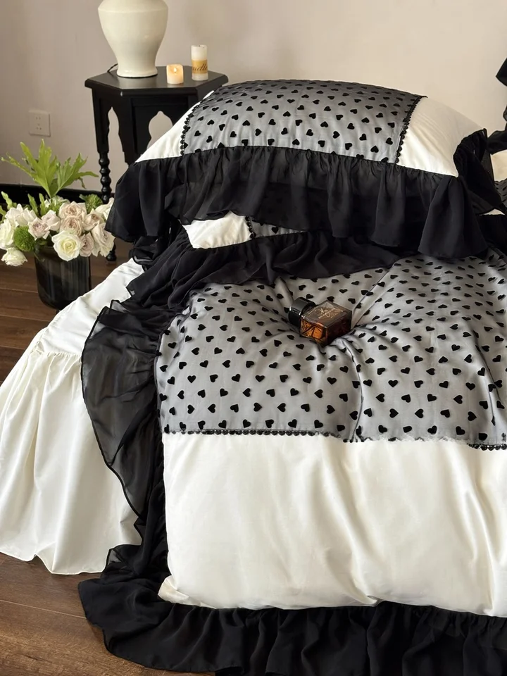 冬用 厚手プリンセススタイル 四点セット【100%コットン・ブラシ仕上げ・ハートレース付き・ベッドスカート・寝具】