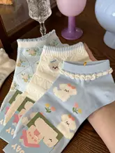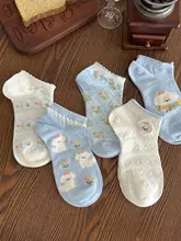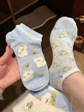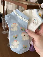 白色の可愛い犬柄ソックス【夏用・薄手・純綿・低いカット・花柄・リボン付き】