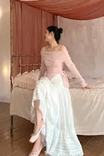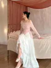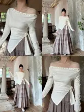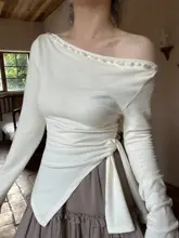 sorozien 珍珠T一字肩長袖ニットトップス【不規則デザイン・斜め襟】