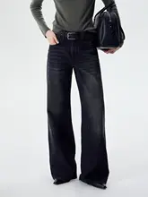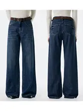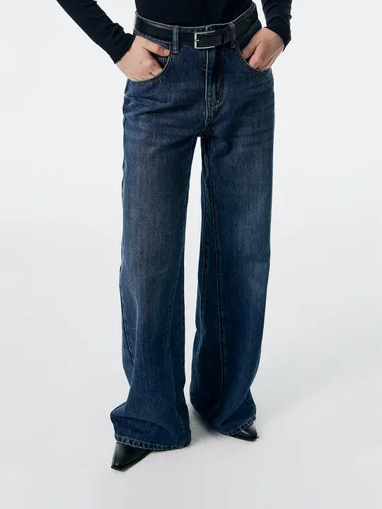 秋冬向けヴィンテージデザインの微広めストレートデニムパンツ【水洗い加工・スリムフィット・女性用】