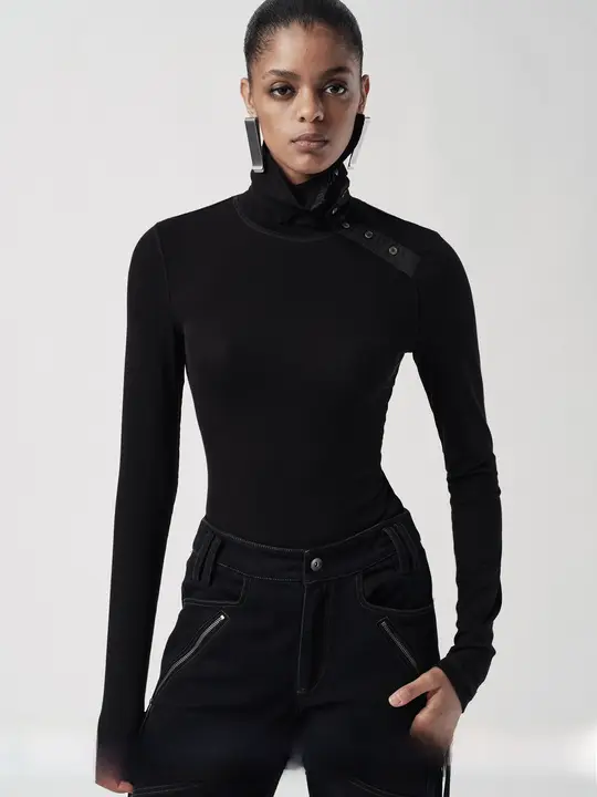 Liegee 側襟デザイン ニットトップス【長袖・ベーシック】