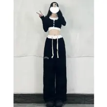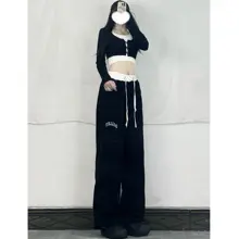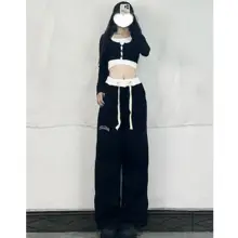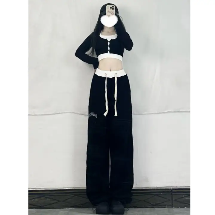 刺繍入り巾着 エクササイズパンツ - ブラック
