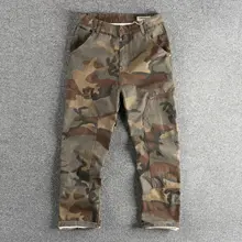 メンズ 秋季用 カモフラージュカーゴパンツ【レトロ加工・ウォッシュド仕上げ・ルーズフィット・ストレートレッグ】