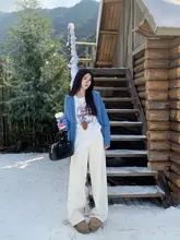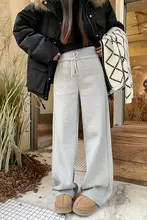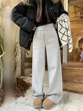 YUZUQI 加厚フリース カジュアルパンツ【高ウエスト・ストレートレッグ・秋冬用】