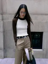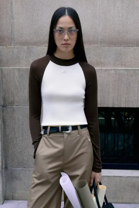 極上の柔らかさのウール混美式クルーネックニットトップス【フィット感・ラグランスリーブ】