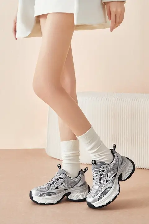 Camel 男女兼用 レトロデザイン 厚底スニーカー【シルバー・カジュアル】