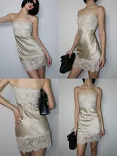 VanessaLab サテンレースキャミソールミニドレス【シャンパンカラー・スリムフィット】