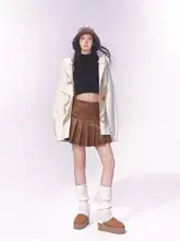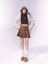 PUレザーAラインスカート【レトロ・ハイウエスト・プリーツデザイン・秋用】