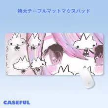 アートデザインのラバー製長方形マウスパッド【アニメ風・ウサギと猫・大サイズ】