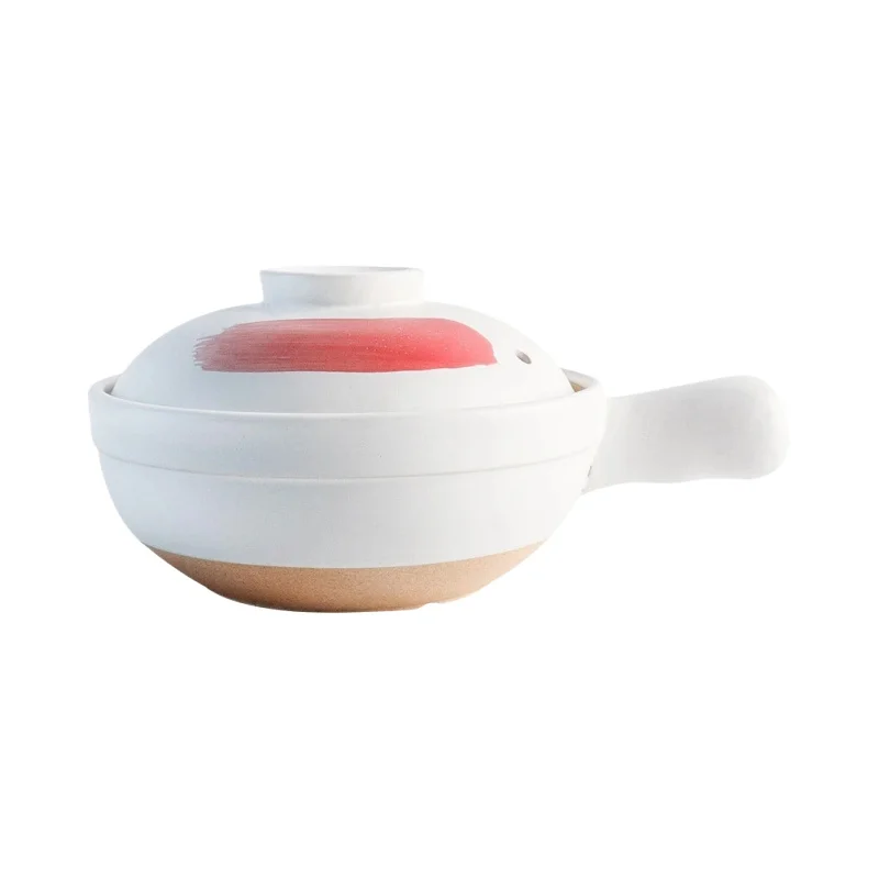 大シングルハンドル土鍋【白赤ブラシ柄】【2人用小】
