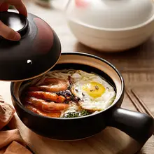 大シングルハンドル土鍋【黒赤刷毛目】【2人用小】
