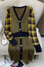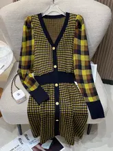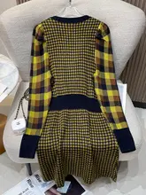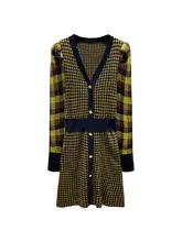 AラインVネックワンピース【チェック柄・長袖・体にフィット・ウエスト絞り】