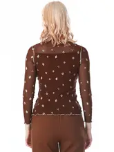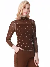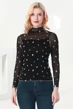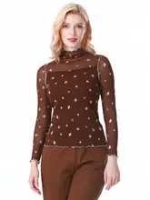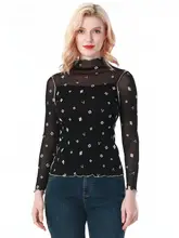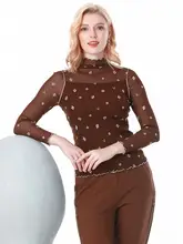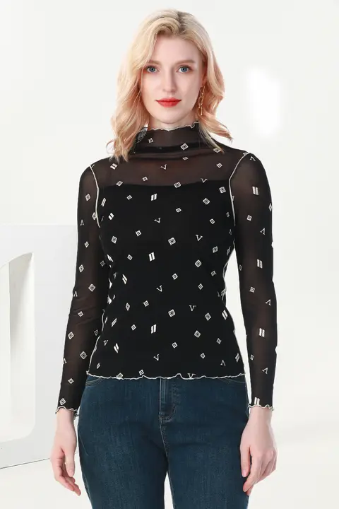 唐朱迪 刺繍入りメッシュ長袖ハイネックTシャツ【スリムフィット・薄手】