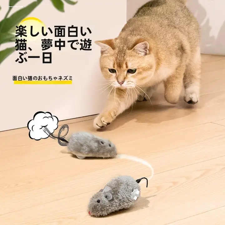 無線リモコン付き 回転式電動ネズミおもちゃ【猫用・植絨仕上げ・リアルな動き】