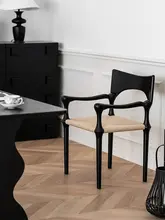 レトロデザインのダイニングチェア【小型家用・デザイナー製・天然木製・ラタン編み】