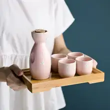 日式陶器製お酒セット【一壺四杯・清酒・温酒用・酒器】
