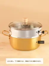 ラーメン鍋+蒸し器 20cm 大 [蓋付きゴールド+蒸し器] ステンレス