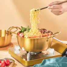 ラーメン鍋 20cm 大 蓋付 [ゴールド] ステンレス