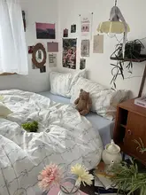 小花柄デザインのコットン四点寝具セット【ベッドシーツ・掛け布団カバー・クッションカバー・セットアップ対応】