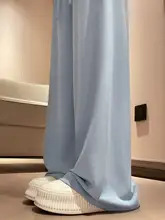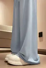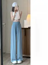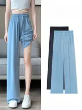 青色冷感繊維ワイドパンツ【ハイウエスト・フィット・夏用・UVカット】