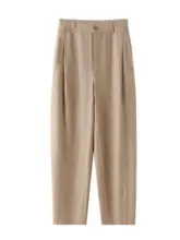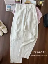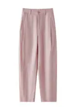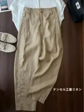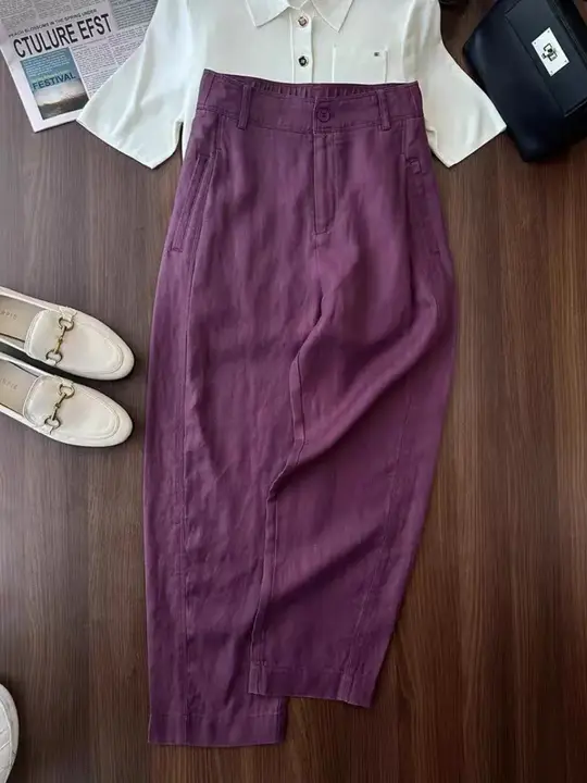 紫色 天然繊維リネン製 女性用バルーンパンツ【九分丈・フィット・カジュアル】(セットアップ対応)