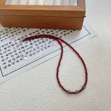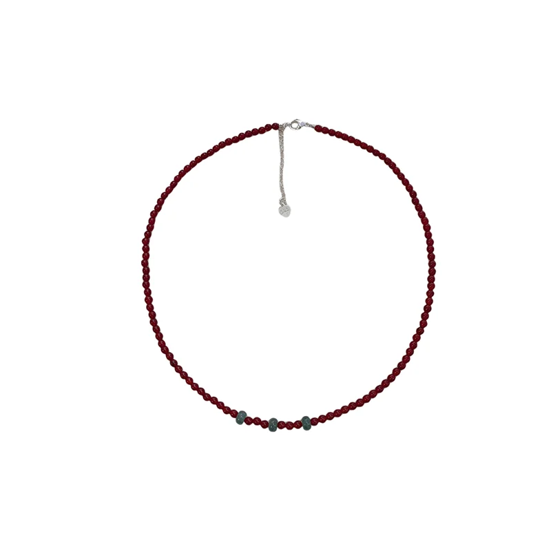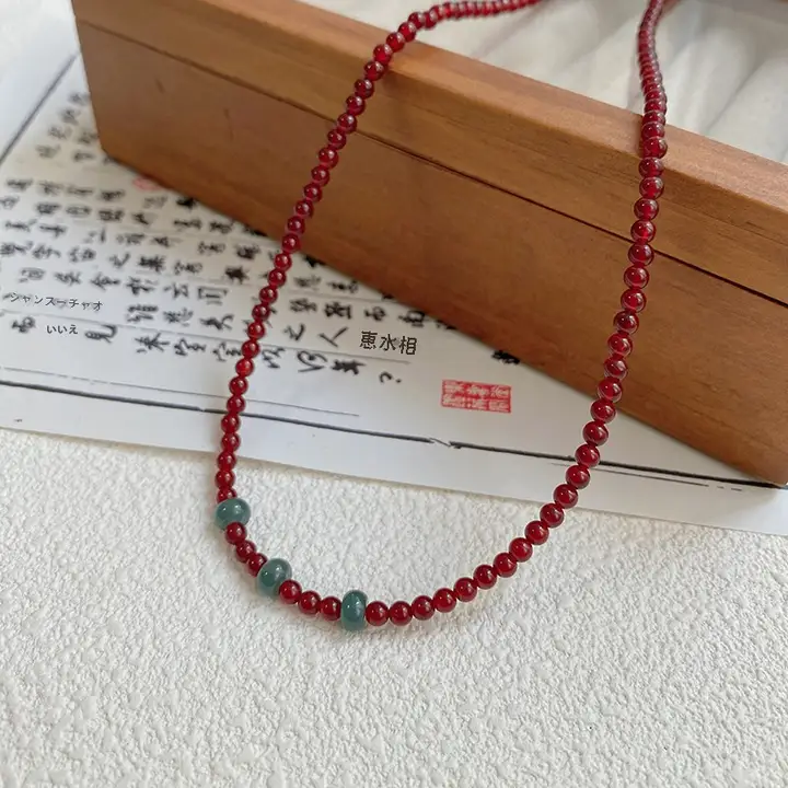 天然紅瑪瑙と翡翠のネックレス【中華風・赤のビーズ・鎖骨チェーン・女性用】