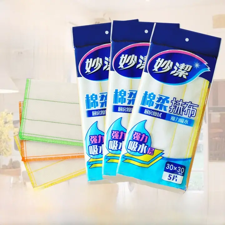 妙潔 5枚入り コットン柔らかい台所用ふきん【植物繊維・食器洗い洗浄機対応・毛が抜けない・油を吸わない】
