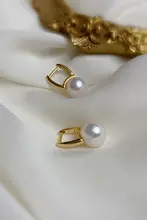 純銀製ゴールドメッキ水桶型ピアス【天然パール・通勤用・レディース】
