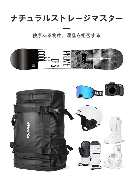 スノーボード用ヘルメット・ブーツ収納可能多機能バックパック【防水・大容量・旅行・アウトドア用】