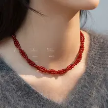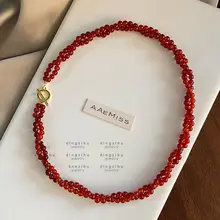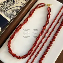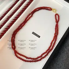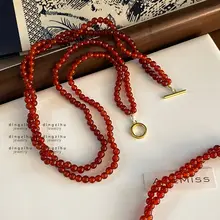 紅瑪瑙の2重ネックレス【OTクラスプ・ユニークデザイン・鎖骨チェーン】