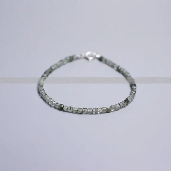 天然の緑色ファントムクォーツブレスレット【極細のカットスクエアビーズ・足首用】