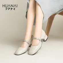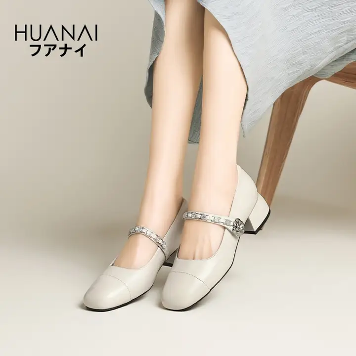 華耐 中ヒール マリージェーンシューズ【春用・一字ベルト・ラウンドトゥ・レディース】