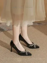 Kefiman 水晶付き 防水ヒール 高級感 浅黒色 ハイヒール【ポインテッドトゥ・細ヒール】