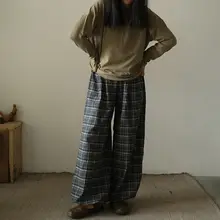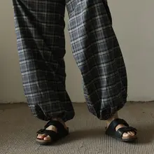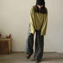 オーガニックコットンチェック柄ルーズパンツ【ウエストゴム・右ポケット・フィット】