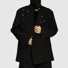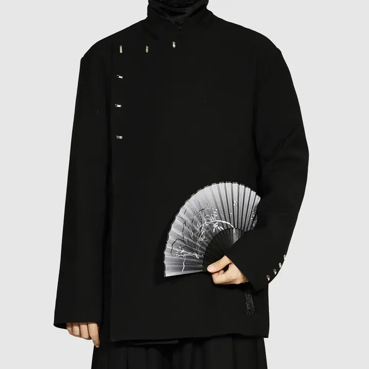 デザイン性の高い中式ジャケット【金属ボタン・ゆったりとした斜め襟・立ち襟】