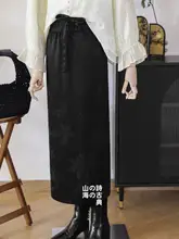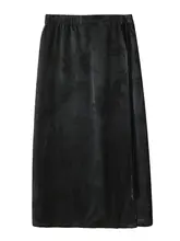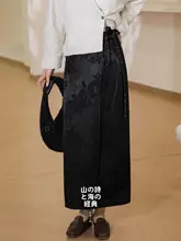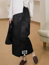 ライセール麻混合素材の包みスカート【新中式・黒・ストレート・ミドル丈】